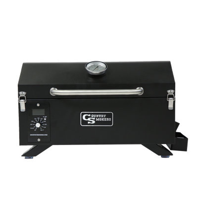 Create an accountThe Frontier Series Traveler Country Smokers Wood Pellet Grill is a sleek, compact pellet grilling machine. Named for its portability, with a clean, black sand finish, it provides savory, wood-fired flavor in a transportable package. The Traveler is soon to be your go-to tabletop grill for any and every outing. Grill, sear, smoke, BBQ and SO much more – whenever and wherever you want. It’s never been this easy to create smokehouse quality food while adventuring .The hopper holds up to 3.5 pounds of hardwood pellets, while the 256 square inches of on-the-go cooking surface provides plenty of room to grill up all your favorite meals no matter where you are. With a temperature range from 180 to 500 degrees Fahrenheit. The Traveler is your “do everything” grilling companion. Enjoy ALL this just by pushing a button – talk about easy. The Frontier Series Traveler Wood Pellet Grill and Smoker is the perfect pellet grill for outdoor enthusiasts, tailgating fanatics or anyone looking to take wood-fired flavor with them on their journeys. Electrical Requirements: 300 watts minimum to power igniter, 110 volt minimum to run the auger and fan once the pellets have been ignited.
