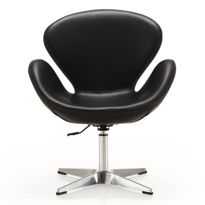 Create an accountRounding out your decor while providing sensible seating arrangements in small spaces, side chairs offer style and versatility to any interior design. Take this one for example: Bringing a touch of mid-century-inspired design to your abode, it showcases a rounded back and two flared arms. Crafted from metal, the base boasts a polished chrome coloring while the faux leather upholstery comes in a solid finish. Measures 34.3"-39.4'' H x 28.7'' W x 24.8'' D.