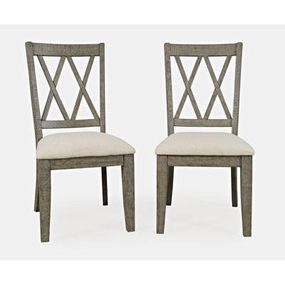 Create an accountThis Collection is the essence of rustic country style with distressed solid pine handcrafted into spectacular furniture perfect for any room in your home. Each piece is unique with subtle distressing that brings out the beauty of the natural wood. Farmhouse living meets contemporary style with this sturdy set of two dining chairs ready to make your home as unique as you are. Gentle distressing of the wood brings a neutral tone that complements any dining ensemble while soft easy-to-clean padding provides comfort and flair. The double X-backed silhouette standing 40 inches tall completes the look, and floor glides are included for an additional layer of protection.