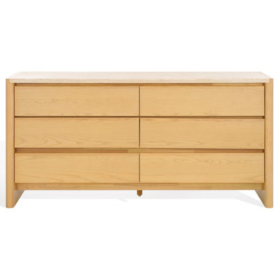 Create an accountStylish storage. This double dresser combines modern design with a mix of natural materials, creating a sophisticated and versatile addition to your bedroom. Crafted from kiln-dried ash and other solid wood, its minimalist profile showcases clean lines and an earthy palette. The six spacious drawers feature a travertine veneer, adding a touch of warmth and texture to the piece. Each drawer is equipped with ball bearing, soft-close roller glides and safety stops for smooth, secure storage. With its lined interiors and natural wood grain color variation, this dresser offers a sleek and practical solution for organizing.