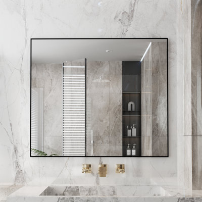 Create an accountThis black frame wall mirror comes with a premium aluminum alloy frame with a thickened baking paint process, which prevents oxidation and corrosion. Classic matte black finish complements a variety of decor to industry, rustic and modern. This bathroom vanity mirror adopts 4mm silver glass, it adopts 5-layer float technology to ensure 1:1 restoration of real image; environmental copper-free material, silvered reflection layer, and epoxy protection, which keeps the mirror no corrosion or distortion. Black is elegant and magical, this matte black frame is high-end and deluxe. Clear lines, simple modern design. perfect for bathroom, bedroom vanity, living room, entryway, hotel, home decor, salon.