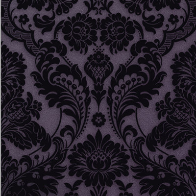 Create an accountGothic Damask Plum contrasts an opulent flock design with an equally luscious color palette. A raised pattern is created by sprinkling powdered wool and a shimmer plum backdrop is added that lends itself to promote a classic and sleek look. This wallpaper is beautifully metallic and rich in pattern resulting in a sophisticated look.
